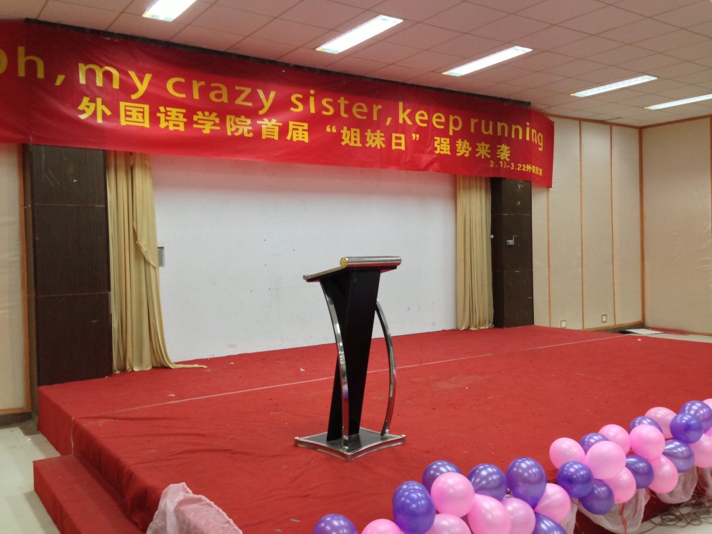 外国语学院首届“姐妹日”活动于2013年3月21日至22日在将军路校区艺术中心多功能厅举行。来自外院的近百名女生组成“姐妹”组合参与了此次活动。