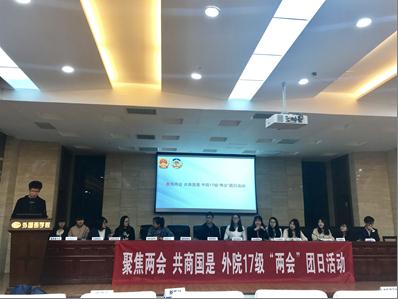 新的时代赋予中国发展新的机遇,如今,国家日益强盛,人民更加幸福。3月14日,在召开“两会”之际,外国语学院17级团总支开展了“聚焦两会,共商国是”团日活动,通过模拟“两会”参政议政,帮助学生感受祖国繁荣富强的根本之源。