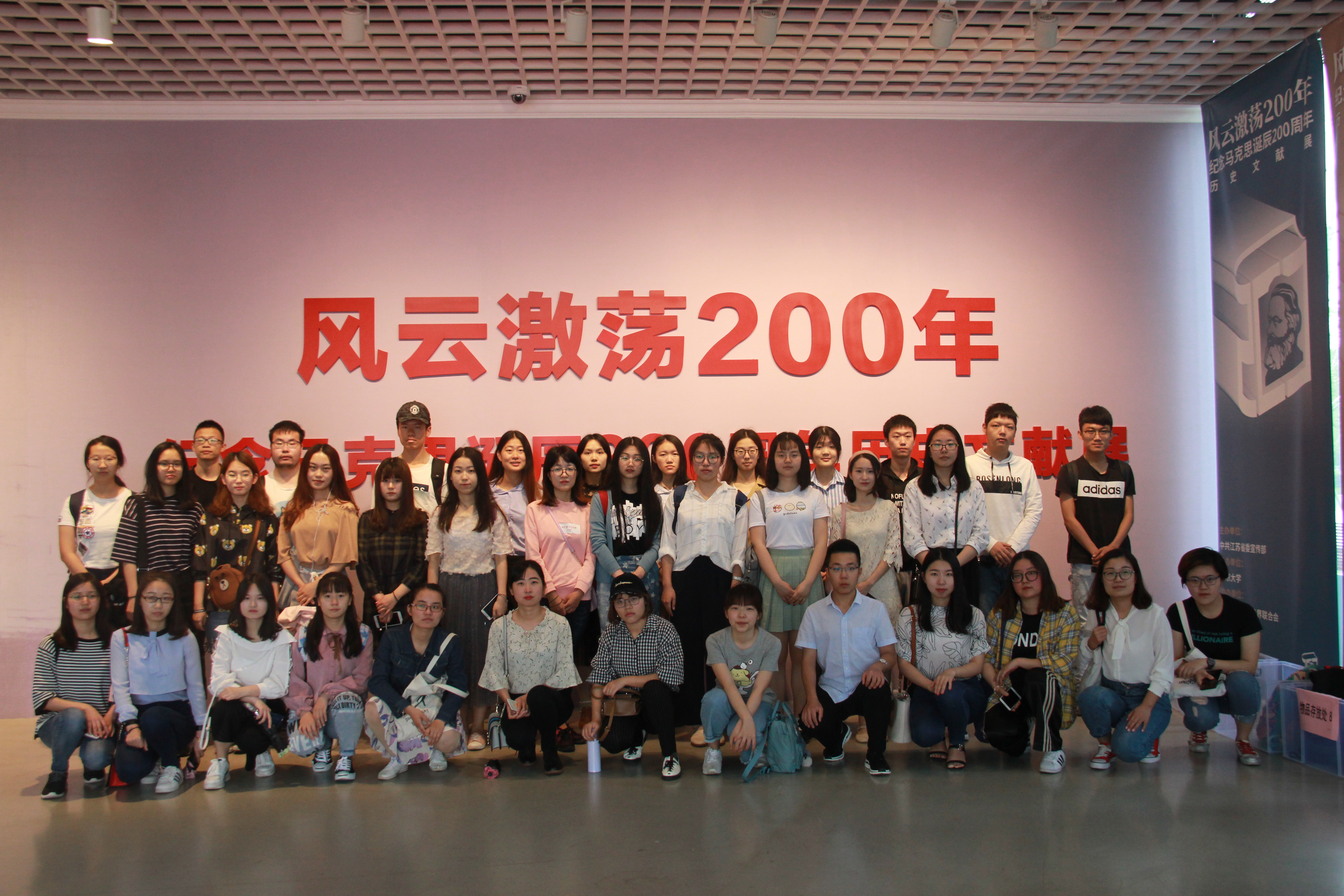 在马克思诞辰200周年之际,为激发学生党员的学习热情,丰富支部党日活动形式,麻豆社 本科生联合党支部、16级研究生党支部、17级研究生党支部于5月19日上午联合开展了“看风云激荡,耀思想光芒”主题教育活动,组织共36名学生党员前往南京大学仙林校区美术馆参观“马克思诞辰200周年纪念展”。