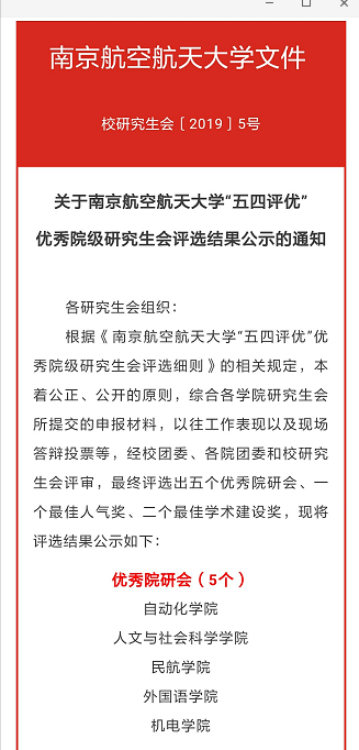 本着公正、公开的原则,综合各学院研究生会所提交的申报材料,综合工作表现以及现场答辩投票等,经校团委、各院团委和校研究生会评审,最终评选出五个优秀院研会,麻豆社 在本次评比中获“优秀院研会”荣誉称号。