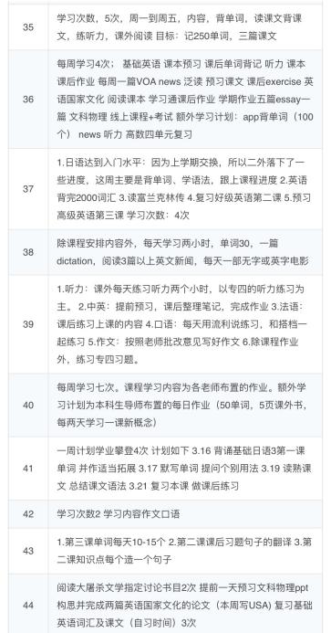 “对症下药,量身打造”:通过“个人成长档案”的填写,帮助同学们合理进行学业分析。每周朋辈学业伴读导师帮助学生一起制定“云”攀登学习周计划,周日由朋辈导师填写提交;每月学生本人续写“个人成长档案”,根据当月周计划进行阶段性学业攀登总结。
