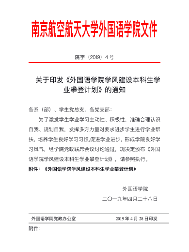 《麻豆社 学风建设本科生学业攀登计划》院字(2019)4号