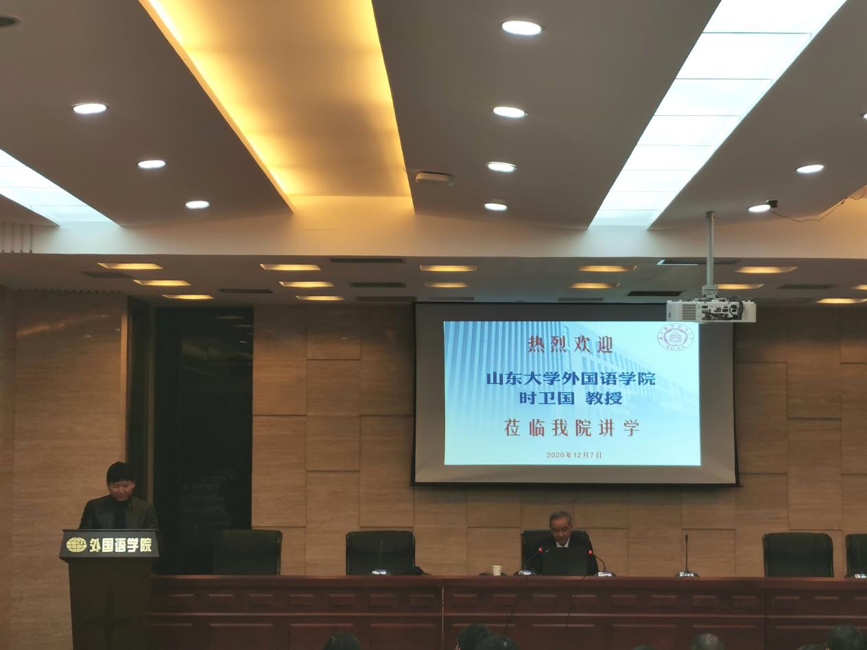 12月7日下午,应外国语学院邀请,山东大学外国语学院兼人文社科青岛研究院特聘教授时卫国教授在国际会议中心举办了题为“日汉翻译学与文学翻译撮要”的学术讲座。我院日语系主任窦硕华老师主持了本次讲座,日语系师生和部分英语专业学生参与了聆听。