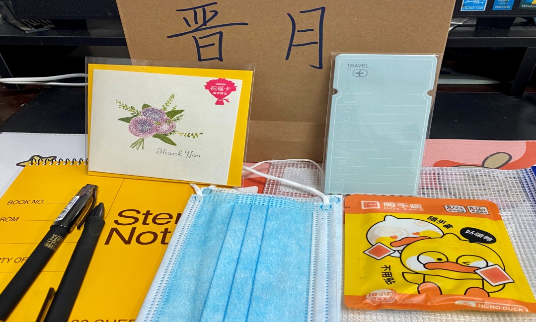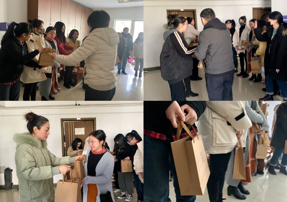 院领导们为2021届考研学子送上包括文件袋、涂卡笔、签字笔等文具和口罩、暖宝宝在内的考研温暖大礼包,其中还有专属于每个人的手写贺卡,表达了学院对同学们的真挚祝福。
