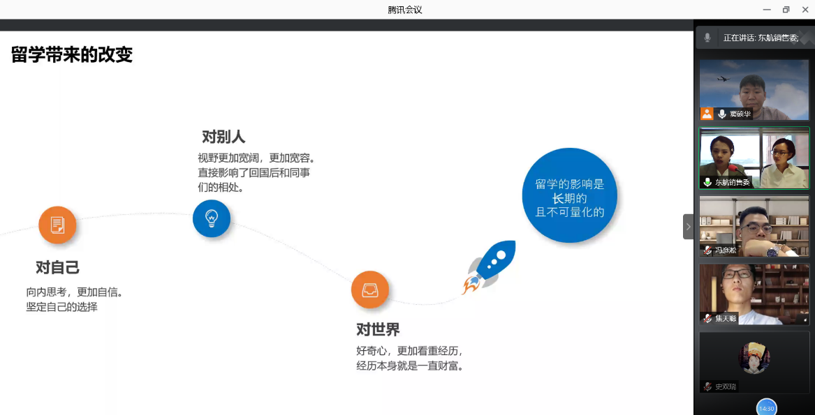 5月17日晚18点,外国语学院日语系《科技文化创新创想》第六讲通过腾讯会议开启,主题为《梦想起航——高校教育助力我们在航司成长》,主讲人为东航销售委的许竹欣和程子原两位优秀代表,其中许竹欣为南航06级校友。