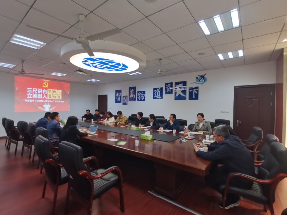 为深入学习习近平总书记“七一”重要讲话精神,落实学校《2021年下半年校院两级党委理论学习中心组补充计划》要求,10月18日下午,外国语学院联合材料科学与技术学院、计算机科学与技术学院/人工智能学院以及将军路校区管委会开展马克思主义学院中心组示范学习会暨“外语教学与立德树人研究中心”学习研讨会。出席会议的有马克思主义学院院长王智,副院长陈红桂、何畏和教授徐军等。外国语学院党委书记左彤云,院长范祥涛,党委副书记梁薇,副院长徐以中、姜礼福以及部分教师代表。材料科学与技术学院党委书记石勇、计算机科学与技术学院/人工智能学院党委书记刘健荣、将军路校区管委会党工委书记邬沛雄、主任刘兼唐,副主任周聚等同志志参加了观摩学习。左彤云代表参会学院对马克思主义学院的领导专家送学上门表示了欢迎和感谢。中心组学习会由陈红桂主持。