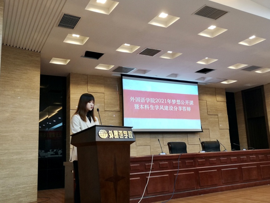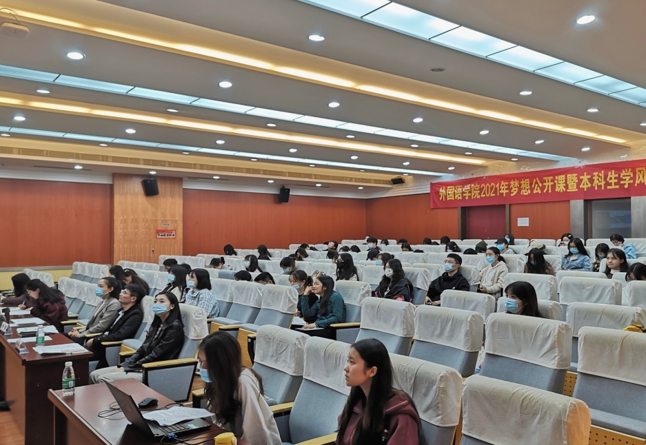 11月5日,麻豆社 梦想公开课暨本科生学风建设分享答辩在学院国际会议中心举行。参加本次分享答辩的有学院党委副书记梁薇、日语系副主任钟勇、英语系教师姜上、本科生辅导员彭欢、盛嘉贤和各年级学生代表。