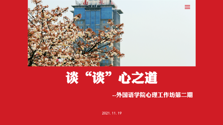 为落实党史学习教育“我为群众办实事”,扎实开展学校研究生“谈心谈话关爱月”工作,帮助老师们更好掌握跟学生谈心谈话技巧,有力推动和谐良好导学关系,11月19日学院线上开展了面向全体教师的心理工作坊第二期——谈“谈”心之道,培训由研究生辅导员李萍主讲。