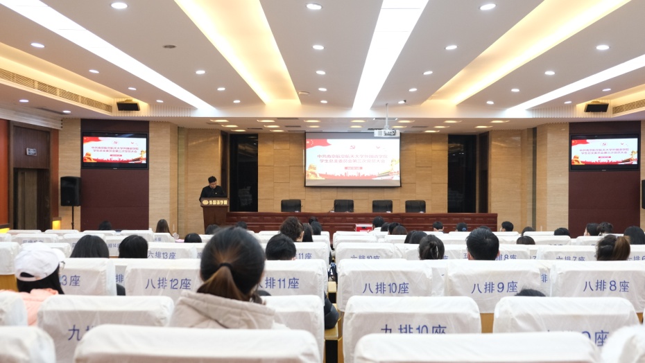 学生党总支组织委员李林泷主持大会。会上,左彤云宣读了《中共南京航空航天大学外国语学院委员会关于同意中共南京航空航天大学外国语学院学生总支委员会换届选举请示的批复》。