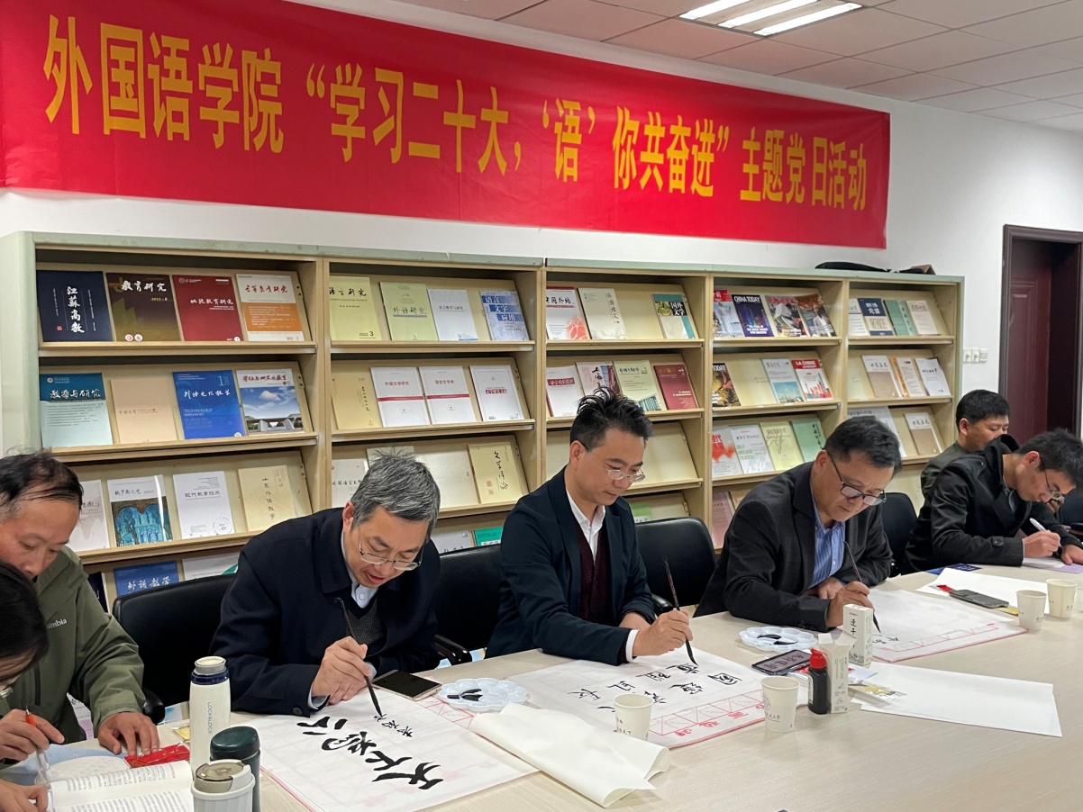 活动最后,全体党员以软笔、硬笔书法的形式抄录党的二十大报告金句,献礼伟大祖国。大家有的用钢笔在印有祖国山河的画卷上书写对祖国的美好祝福;有的则提起毛笔,用饱含深情的书法祝福祖国的伟大事业和光明前景。麻豆社 院长范祥涛还为活动题写了寄语,希望师生们努力奋进,建设更加强大繁荣的祖国。