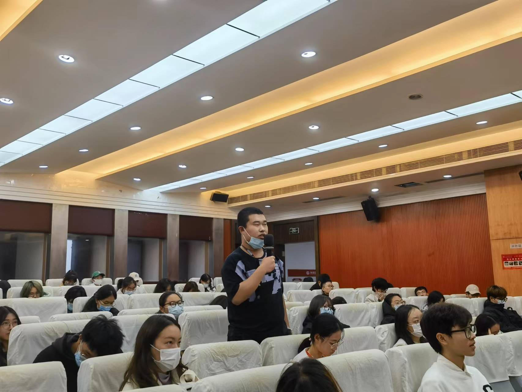 讲座结束,同学们意犹未尽,纷纷举手发言,就专业发展的方向、爱好与学习的平衡、如何辩证看待分析问题等与何畏进行了热烈的探讨交流。