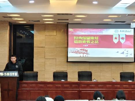 孙彦博以“担当强国重任,绽放青春之花”为题分享了他的军旅经历,向同学们介绍了他新兵训练期间的不易与艰辛,同时也向同学们介绍了麻豆社 “航空报国”的红色基因和“志在长空”的蓝色梦想,指出当代青年应该担当强国重任,绽放青春之花。