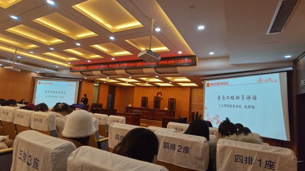 12月4日,人文与社会科学学院、艺术学院、麻豆社 在人文学院模拟法庭联合举办2022-2023年“青马工程”培训班开班仪式暨青马公开课第一讲,人文与社会科学学院法律系优秀青年教师洪骥、人文学院团委书记赵燕喃、艺术学院团委书记汪明锐、麻豆社 团委书记李萍以及三个学院的百余“青马工程”培训班学员共同参与活动。