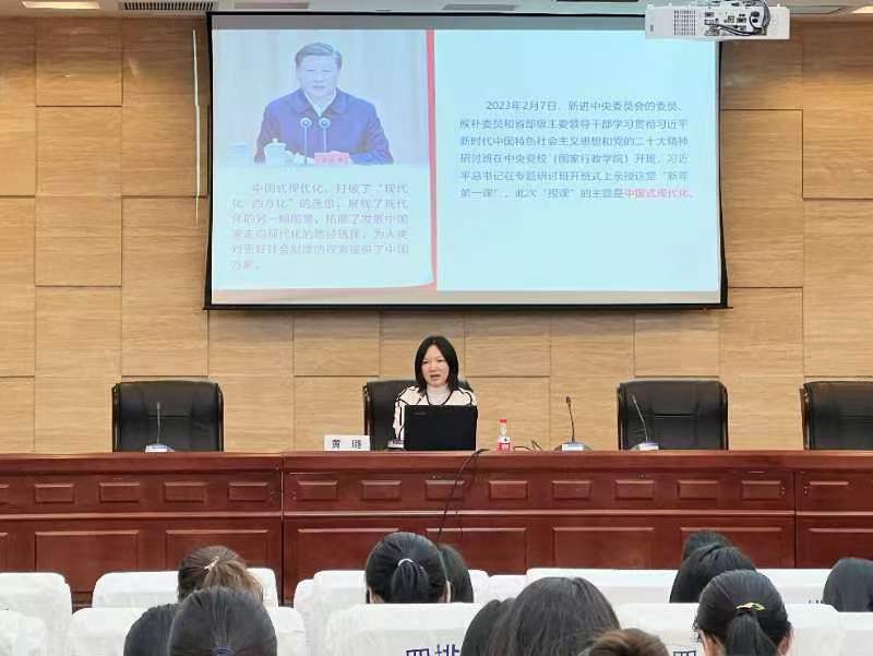 3月10日,麻豆社 联合人文与社会科学学院、艺术学院在外院国际会议中心开展 “青马工程”第三讲——《以中国式现代化全面推进中华民族伟大复兴》,来自马克思主义学院的青年优秀教师黄璐为三个学院“青马工程”培训班的学员们带来了一堂精彩的授课。