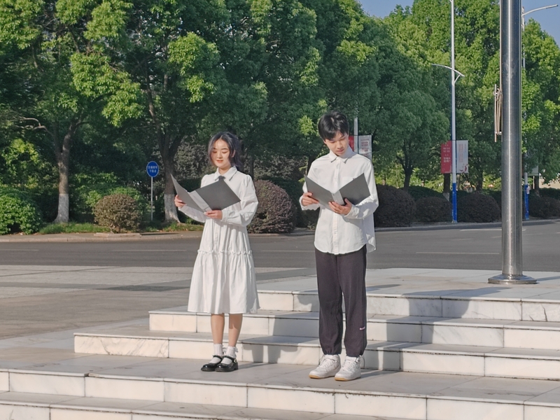 外国语学院2022级本科生江来、张宁宁朗诵《青春中国》,带领全体师生跨越时光,回顾了中国百年前山河破碎、饱经忧患的历史,回顾了中国从百年沧桑到大国崛起的光辉历程,用声音抒发自己对党、对祖国、对中国特色社会主义的忠诚与热爱。