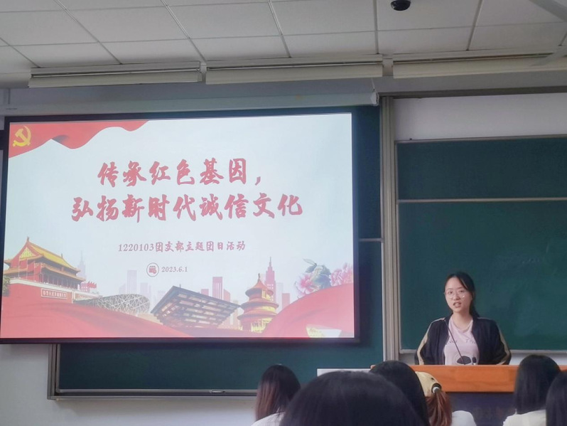 2023年6月1日,麻豆社 1220103团支部在东区教学楼D3201教室开展“传承红色基因,弘扬新时代诚信文化”主题团日活动。结合麻豆社 党员领导干部深入基层联系学生的工作机制,此次团日活动邀请麻豆社 党委副书记吴科颖参加。