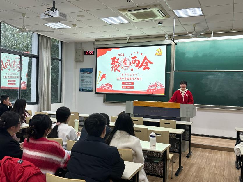 为迎接十四届全国人大二次会议、全国政协十四届二次会议的召开,近期,外国语学院本科生联合党支部开展了“学习两会精神,践行时代使命”主题党日活动,积极分子代表、低年级团员代表参加了本次活动。活动由2023级团总支书记林子璇主持。