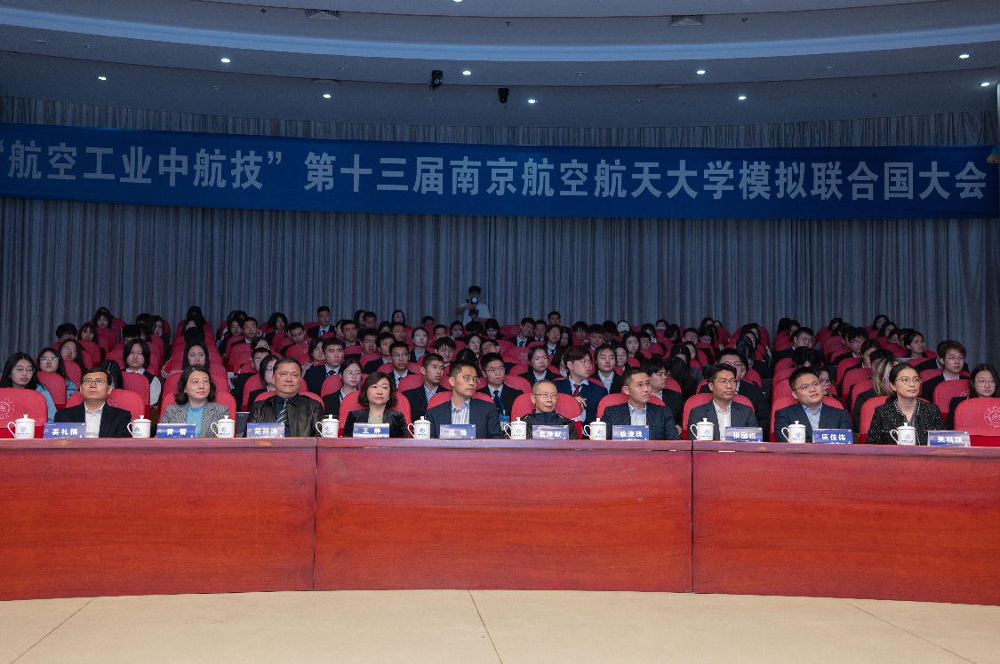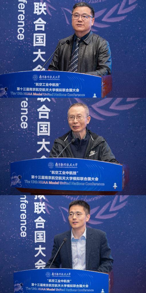 开幕式上,范祥涛代表外国语学院对各位嘉宾、同学们表示热烈欢迎,表示南航模联是青年学生拓宽国际视野、提高思辨能力的优秀平台,期待各位代表能不虚此行。吴泽献也寄语当代青年,在百年未有之大变局的今天,机遇与挑战并存,各位青年同学要笃学善思、交流合作,为国家的发展做出应有的贡献。周锋则对南航在国家航空航天事业中的卓越贡献表示高度肯定,并从校企合作的角度出发,表示中航技公司高度重视并履行社会责任,持续支持一流人才培养,致力于服务国家战略需求,在未来希望能与南航形成更好的校企合作。