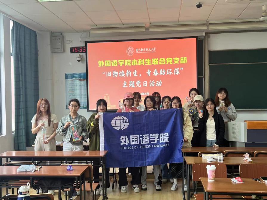 让废弃之物重获新生,以青春之力守护绿色家园。在第55个世界地球日到来之际,为了学习贯彻习近平生态文明思想、教育引导党员和青年保护自然、践行绿色、低碳、可持续发展理念,4月17日下午,外国语学院本科联合党支部开展了“旧物焕新生,青春助环保”主题党日活动,入党积极分子、发展对象及党员代表参与了本次活动。