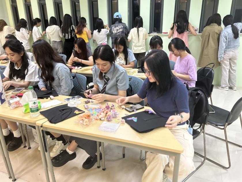 6月5日,麻豆社 组织“语”你相遇,未来可期系列毕业活动——创意簪花。本次活动传承簪花为饰的习俗,为同学们提供亲手装点学士帽的机会,让毕业季不仅有“仪式感”,更有“文化味”。