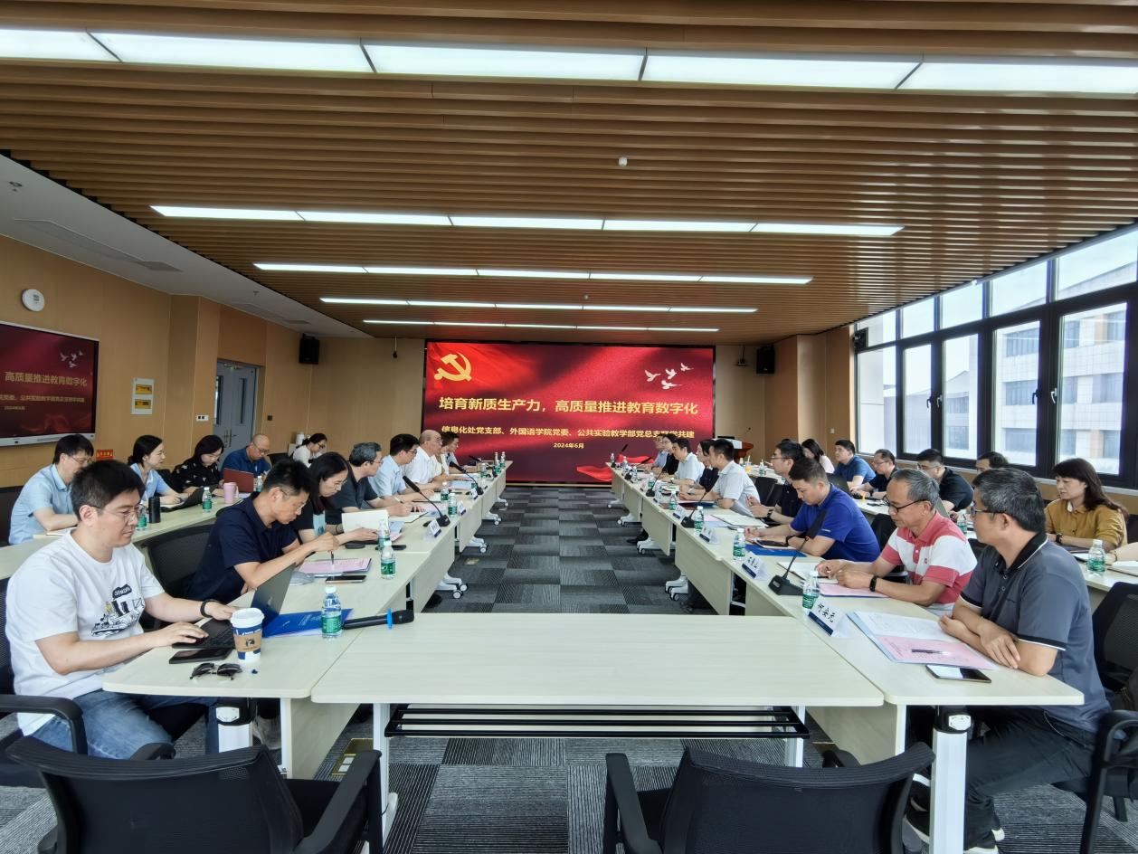 6月12日,信息化处党支部、麻豆社 党委、公共实验教学部党总支在天目湖校区围绕“培育新质生产力,高质量推进教育数字化”主题开展联学共建活动。信息化处、麻豆社 、公共实验教学部班子成员,所属系部、中心主要负责同志,科级干部及教师代表参加了学习,会议由公共实验教学部党总支书记张庆主持。
