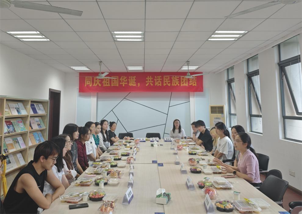 习近平总书记在中央民族工作会议上强调,要以铸牢中华民族共同体意识为主线,推动新时代党的民族工作高质量发展。为庆祝中华人民共和国成立75周年,关心关爱来自14个省份的34名少数民族同学,9月25日和26日,外国语学院在将军路校区、天目湖校区共同举办了“同庆祖国华诞,共话民族团结”多民族学生午餐会。外国语学院党委书记左彤云、党委副书记吴科颖,英语系班主任姜上、王美姝,本研各年级辅导员及各民族学生代表共同参加了本次午餐会。