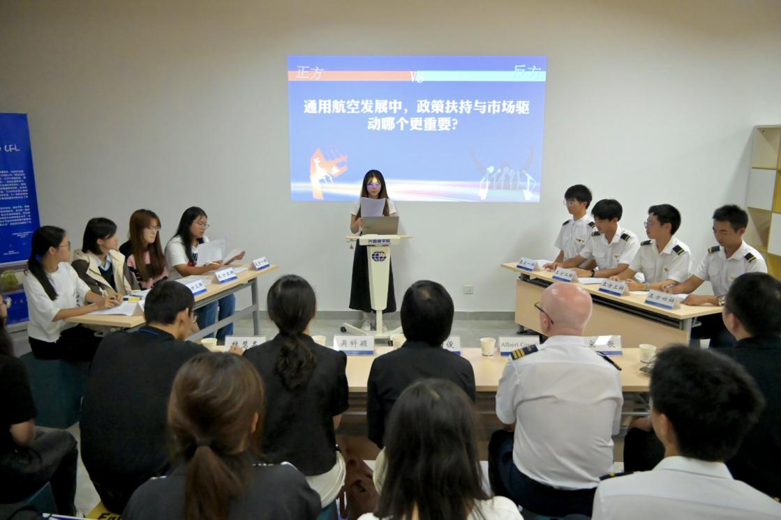 本次思辨会采取创意辩论的形式。为了拓宽两院学生对于三航知识的了解、提升同学们的双语表达水平,本次英文辩论主题聚焦“通用航空发展中,政策扶持与市场驱动哪个更重要”,引导同学们关注通用航空发展的时事热点,将所学运用于实际。