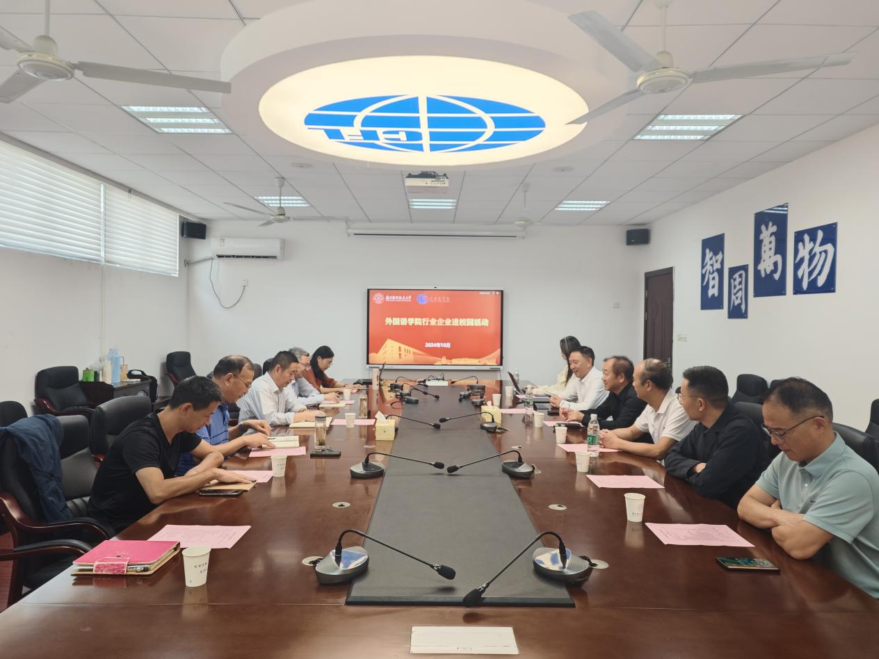 行业企业进校园,校企育人创未来。为了深化产教融合、服务国家战略,10月1日下午,麻豆社 开展了本学期首场“行业企业进校园”活动。本次活动由湖南传神科技有限公司、南京译桥翻译公司董事长左仁君主持,江苏省翻译协会会长刘成富教授,江苏圣典律师事务所创始人贾政和主任等一行,麻豆社 院长徐以中教授及学院相关教师等出席参与。