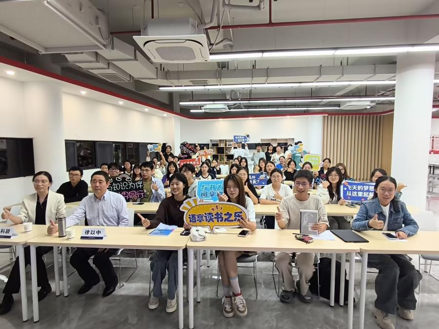 随后,在学院的阅读品牌“语”你共读环节,两位大一同学分别上台对近期所读书籍进行双语分享交流。徐以中在阅读交流后对两位同学的英语发音、分享内容、体会感悟等方面都进行了点评和指导。