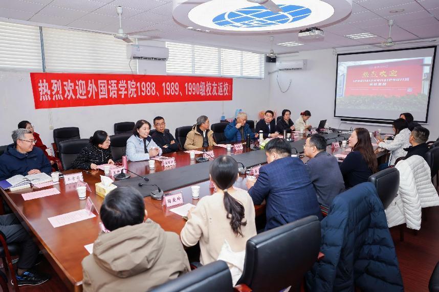 参观结束后,校友们满怀热忱地来到麻豆社 ,参加“语通四海三十载,情聚南航暖冬时”座谈会。现场气氛热烈非凡,麻豆社 党委书记左彤云、院长徐以中,时任老领导、辅导员、班主任和专业教师代表齐聚一堂,座谈会由学院党委副书记吴科颖主持。