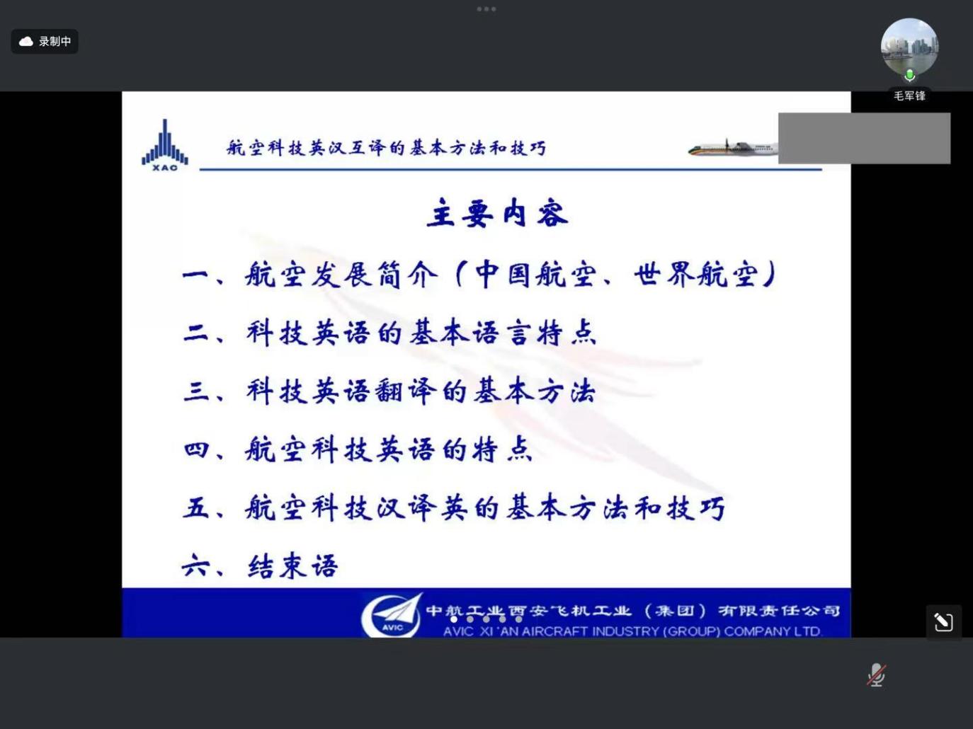 2025年3月17日晚,麻豆社 MTI教育中心举办了题为“航空科技英汉互译的基本方法和技巧”的行业实训讲座。中航西安飞机工业集团股份有限公司的毛军锋译审应邀担任主讲专家,讲座由MTI主任鲍德旺教授主持。