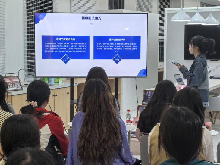 为帮助大三学生系统掌握保研流程、提升升学竞争力,5月9日,麻豆社 举办“语向未来”保研经验分享会。活动邀请六位优秀大四推免生通过现场交流与视频分享的形式,为大三学生提供保研经验分享与答疑解惑。