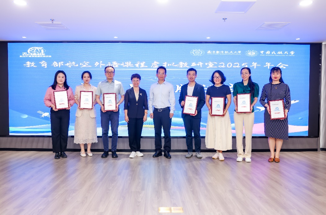 刘宇雷、张艳玲共同为教育部航空外语课程虚拟教研室新成员单位授牌。