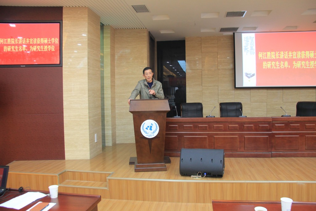 3月22日下午,我院2013届硕士研究生毕业典礼暨学位授予仪式在学院楼报告厅隆重举行。身着硕士服的毕业生从副院长刘长江手中接过了证书。从此,他们将在新起点上,扬起风帆,挥洒人生,贡献才智。
