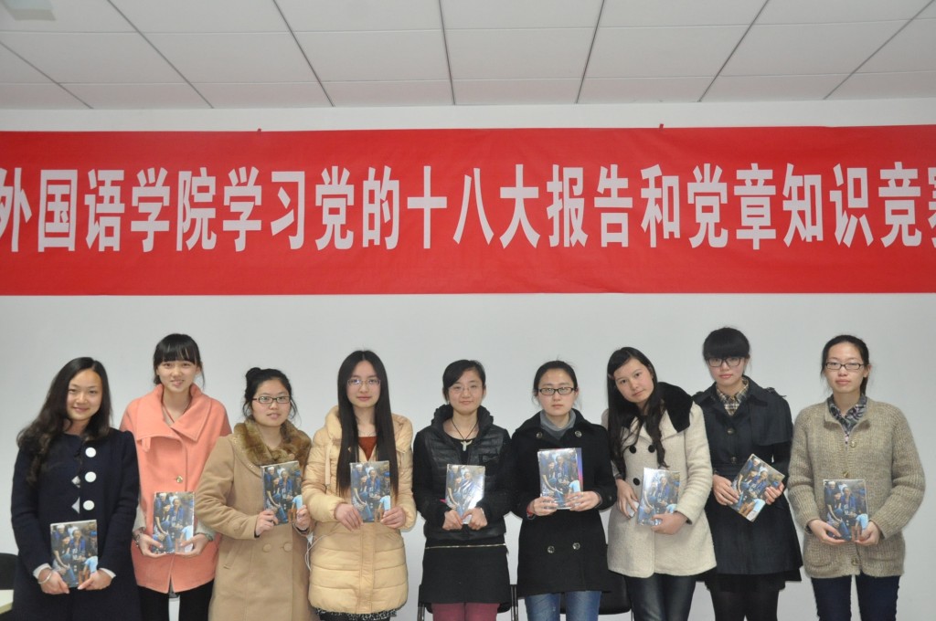 外国语学院于2013年3月27日举办了以学习党的十八大报告和党章知识为主题的“一站到底”活动。学院11、12级本科生联合党支部、10级本科生党支部以及研究生党支部共同参与了此次活动。