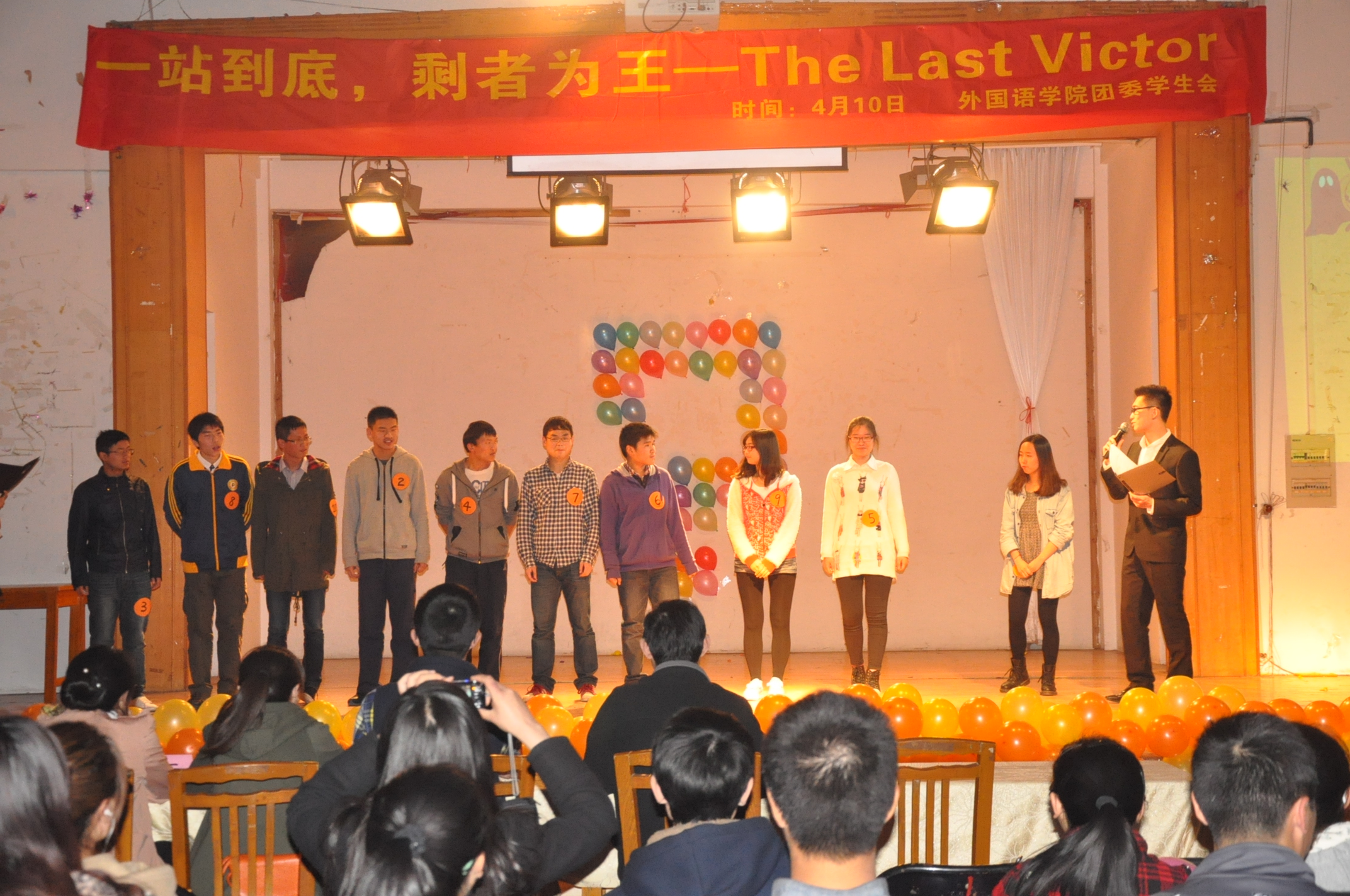 2013年4月10日晚,由外国语学院主办的“剩者为王”系列活动在将军路校区大学生活动中心拉开帷幕。此次活动邀请到了学生处张跃老师、外国语学院团委书记赵铮老师以及各年级辅导员。