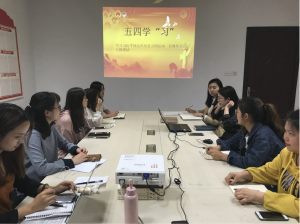 2019年正值五四运动一百周年,5月9日晚,外国语学院18级研究生党支部于学院党员活动室举办“五四学‘习’”活动。在18级研究生党支部书记樊梦郡同志的组织下,支部全体党员及入党积极分子共同学习了习近平总书记在五四运动一百周年大会上的讲话,辅导员盛嘉贤出席了本次活动。