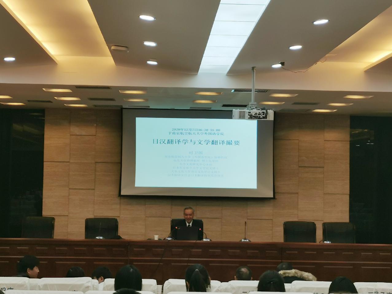 12月7日下午,应外国语学院邀请,山东大学外国语学院兼人文社科青岛研究院特聘教授时卫国教授在国际会议中心举办了题为“日汉翻译学与文学翻译撮要”的学术讲座。我院日语系主任窦硕华老师主持了本次讲座,日语系师生和部分英语专业学生参与了聆听。