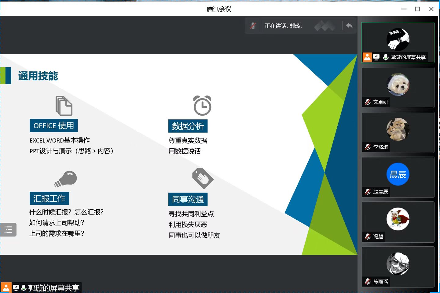 接着,郭经理细心地为同学们总结了四点工作通用技能,即office的使用、数据分析、汇报工作和同事沟通,为同学们进入职场后的技能提升方向提供了参考。郭经理还分享了自己工作之余考取茶艺师执照、摩托车驾照等事例,建议大家可以尝试通过学习提高满足感和成就感。随后她为同学们推荐了三本职场相关的书籍,希望能为大家提前了解职场提供帮助。