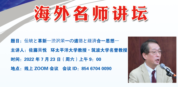 7月23日(周六)上午9:00,外国语学院日语系海外名师讲坛第三讲通过线上ZOOM会议成功进行,主题为《伝統と革新―渋沢栄一の道徳と経済合一思想―》。主讲嘉宾为环太平洋大学教授・筑波大学名誉教授佐藤贡悦先生。