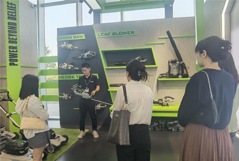 交流结束后,庞云和孙妙娣陪同一行人参观了泉峰花园工具产品展厅,实地感受了公司围绕“诚思积善、天道酬勤”企业理念,持续地推进产品的创新与研发。