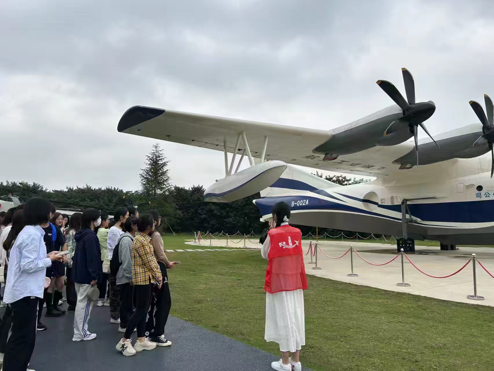 征途星辰大海间,鲲鹏翼展御风园。在“青年讲解团”志愿者的带领下,外国语学院2023级本科新生们参观了以“鲲龙”、“枭龙”、歼8-Ⅱ、K8为代表的19架大国重器。通过近距离接触国之重器、全方位了解空天装备、沉浸式感受国防文化,同学们空天报国、志在长空的蓝色基因与红色梦想交织交融,愈加强烈。
