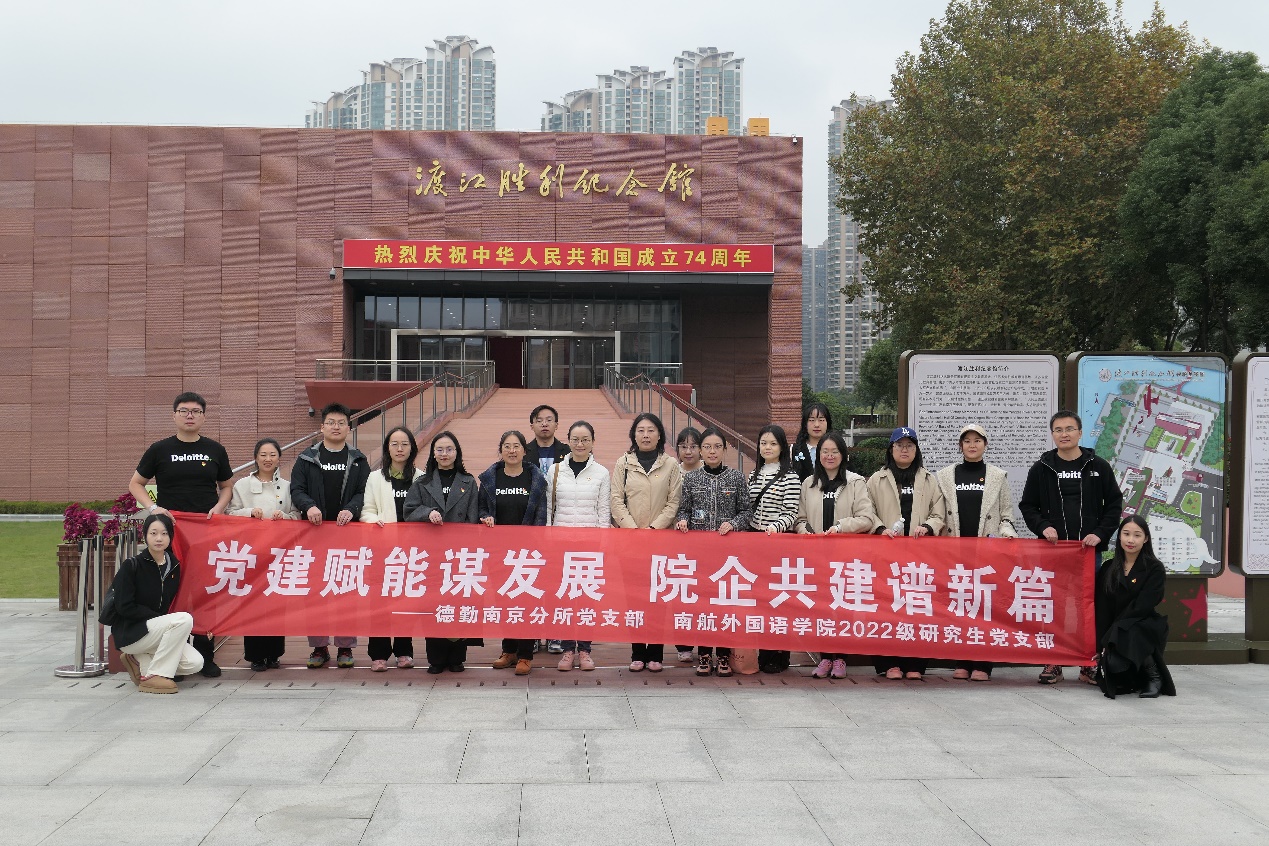 为增进校企交流,巩固访企拓岗成效,外国语学院与德勤南京分所联合开展以“寻访红色地标,赓续红色信仰”为主题的党日活动,共同参观南京渡江胜利纪念馆、中国共产党南京历史展览馆,并交流心得体会。德勤南京分所党支部书记、审计部合伙人鞠广皓、支部副书记、审计部经理刘佳带领分所党支部成员,外国语学院党委书记左彤云、党委副书记吴科颖带领2022级研究生党支部成员及青年教师代表共同参与了此次活动。
