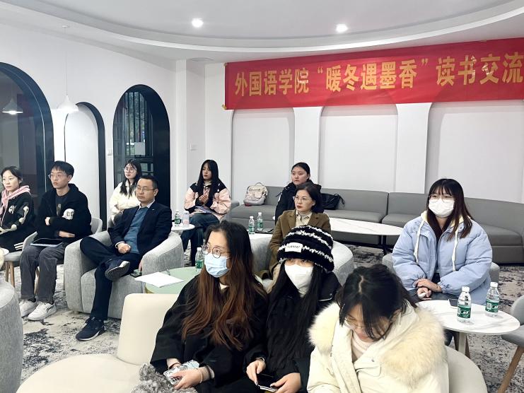 为增加师生交流,共享文学魅力,2023年11月30日下午,外国语学院2021级本科生举办“暖冬遇墨香”读书交流会,我校教师发展与教学评估中心主任朱建军老师、副主任杨兰芳老师、外国语学院2021级本科生代表参与了本次活动。