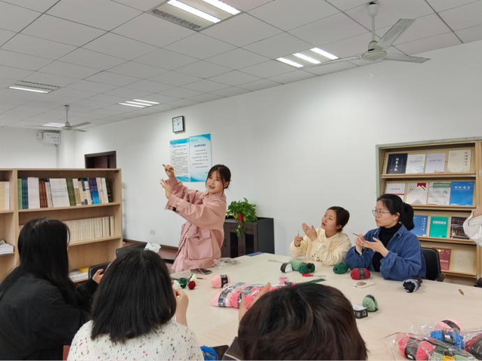 三月是我校心理健康月,为关爱同学们心理健康,营造愉悦向上的心理氛围,外国语学院于近日举行了第八期创意手工坊活动。中外学生一起参与,通过美妙而有趣的钩织艺术,工坊成员发挥创意的同时,在彼此协作互动中收获快乐。