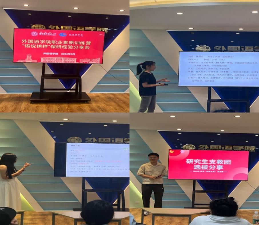 为进一步深化同学们对保研流程的理解与把握,助力学生清晰掌握保研标准与步骤,提升准备效能,外国语学院于5月20日晚在学院楼“外语梦工厂”成功举办了保研经验分享会。本次分享会邀请了2020级张晓行、谢丽君、吴思蒙三位优秀学子作为嘉宾,分享了他们保研成功的实践经验与感悟。
