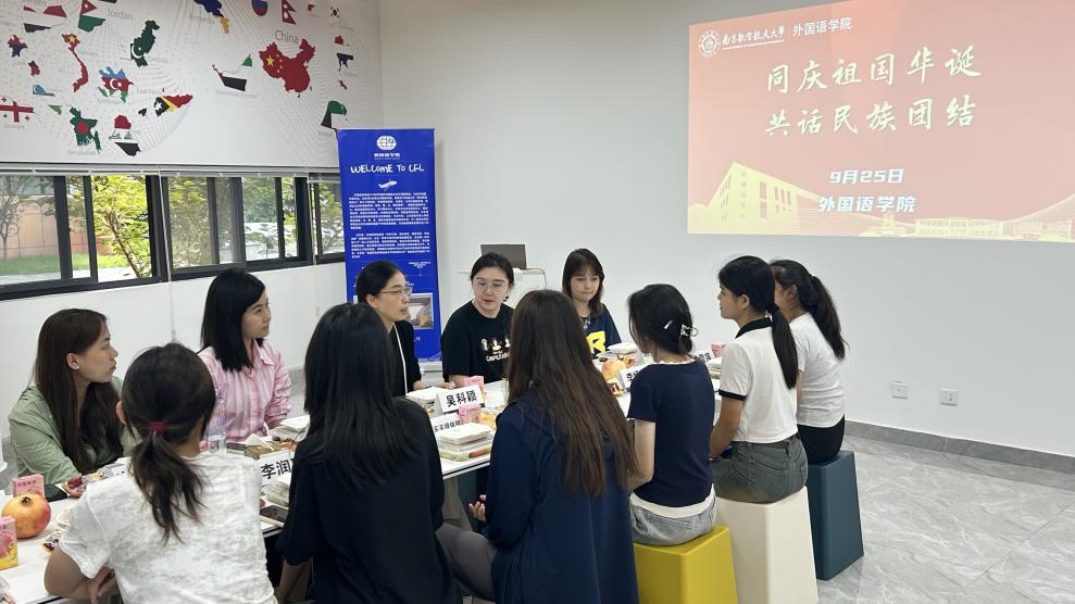 习近平总书记在中央民族工作会议上强调,要以铸牢中华民族共同体意识为主线,推动新时代党的民族工作高质量发展。为庆祝中华人民共和国成立75周年,关心关爱来自14个省份的34名少数民族同学,9月25日和26日,外国语学院在将军路校区、天目湖校区共同举办了“同庆祖国华诞,共话民族团结”多民族学生午餐会。外国语学院党委书记左彤云、党委副书记吴科颖,英语系班主任姜上、王美姝,本研各年级辅导员及各民族学生代表共同参加了本次午餐会。