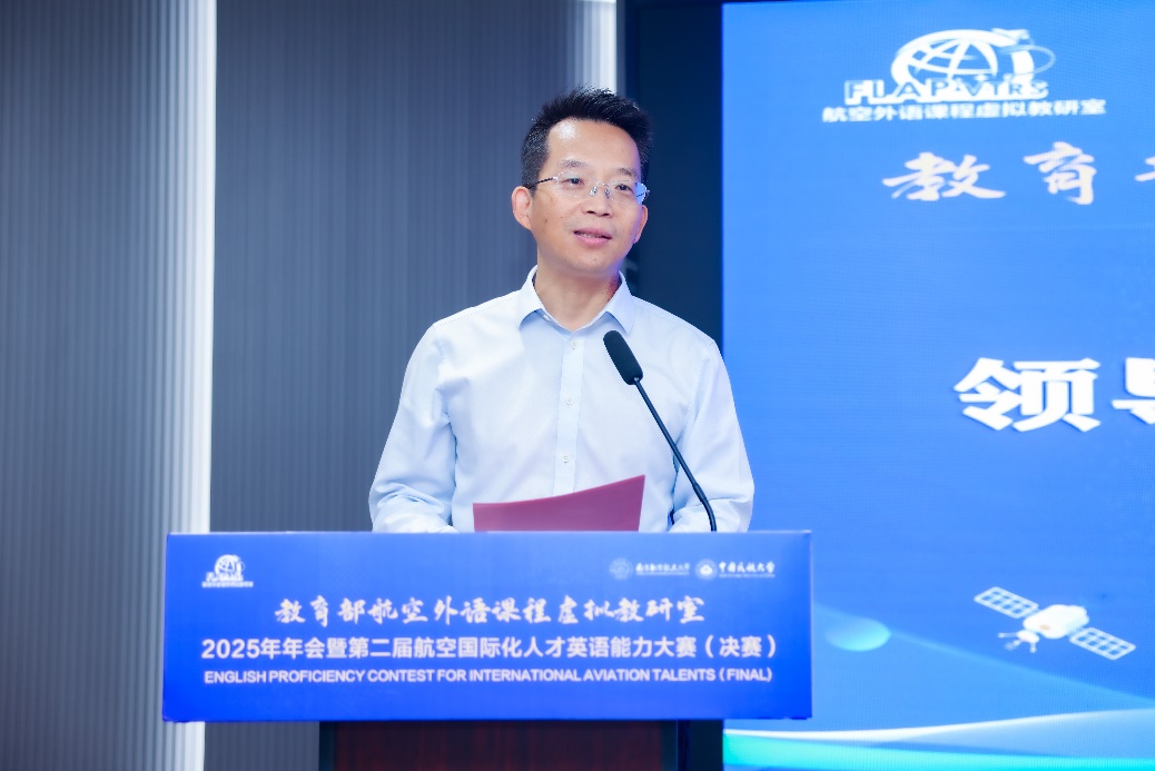 刘宇雷在开幕式上致辞,对各位专家、学者的莅临表示热烈欢迎。他指出,航空外语教育是连接国际航空产业链、服务国防现代化建设的重要纽带,航空外语课程虚拟教研室自成立以来在课程建设、资源共享、教师发展等领域均取得了显著成果。在新文科建设背景下,更要以新质生产力为引领,以创新驱动教育改革,以数字化赋能教学实践,以产教融合深化协同育人,努力造就一批兼具国际视野、家国情怀和专业能力的航空外语人才。