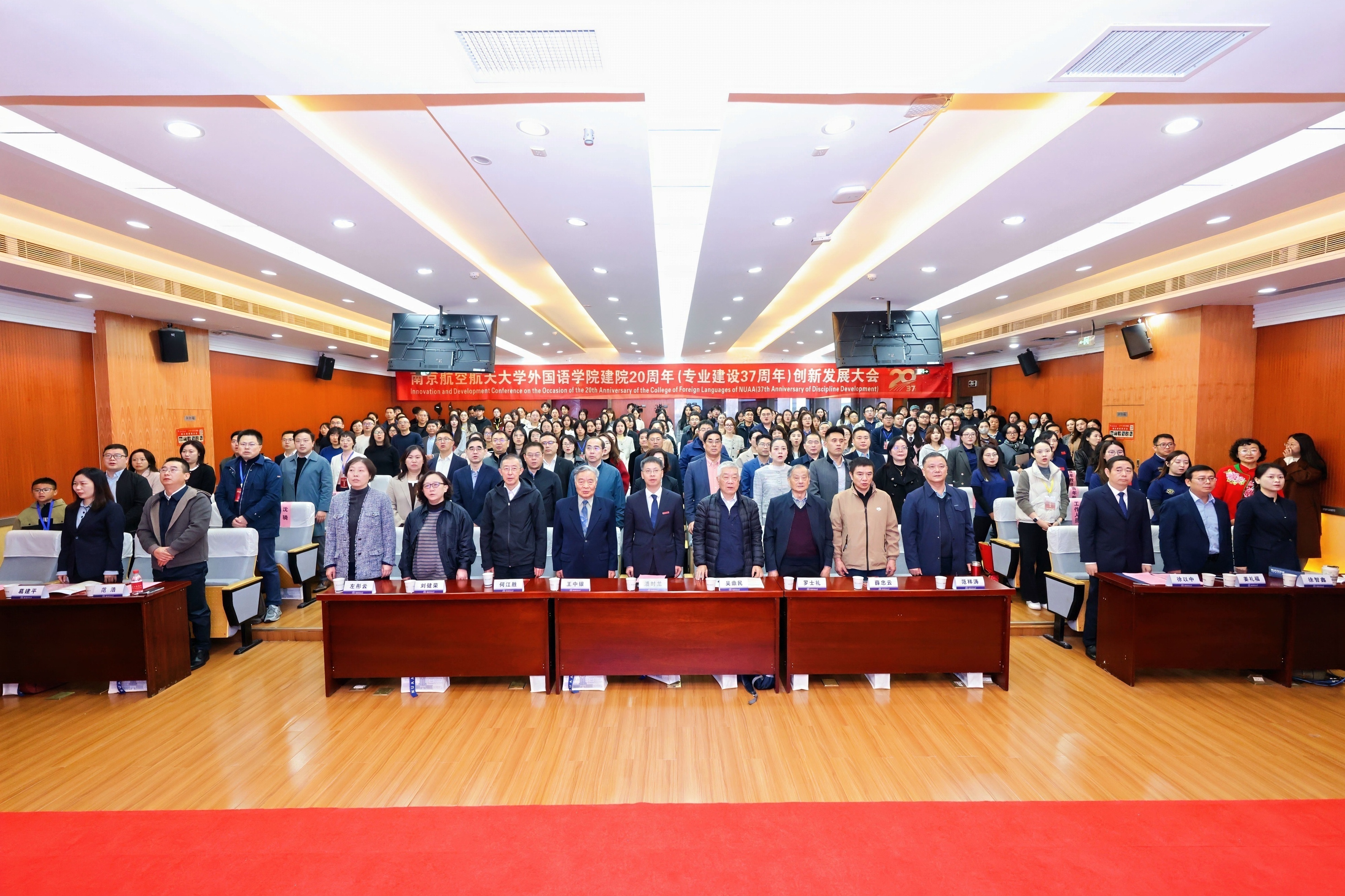 南京航空航天大学校长助理潘时龙教授,外国语学院历任院领导,曾在外国语学院学习或工作过的领导、兄弟学院领导、院友代表、学院教职工及学生代表出席大会。全球校友、广大师生、社会各界朋友通过网络平台观看大会直播,共同庆祝学院建院二十周年。